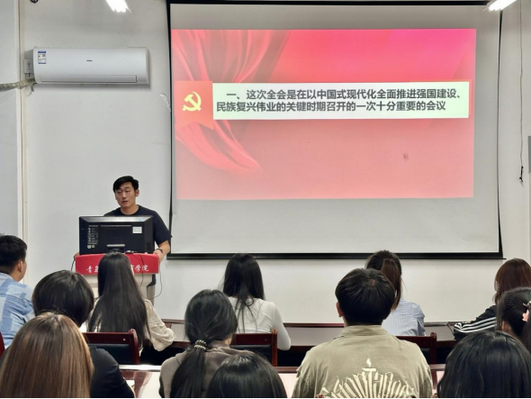 為深入學(xué)習(xí)貫徹黨的二十屆三中全會(huì)精神,將學(xué)院廣大師生的思想和行動(dòng)統(tǒng)一到黨中央決策部署上來(lái),商學(xué)院分階段分層次推動(dòng)全會(huì)精神宣講,引導(dǎo)廣大師生準(zhǔn)確把握全會(huì)精神內(nèi)涵,在學(xué)思踐悟中凝聚奮進(jìn)力量。