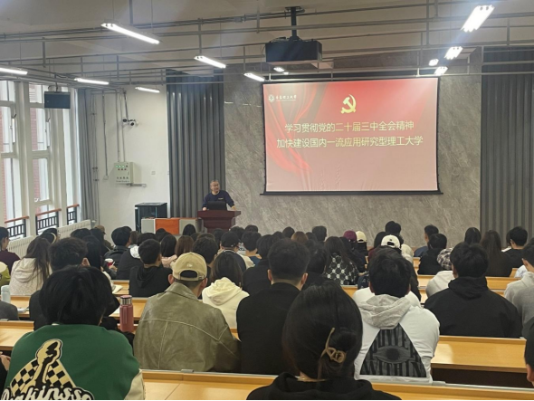 10月30日,學(xué)院黨委書(shū)記肖學(xué)斌面向?qū)W院青馬培訓(xùn)班學(xué)員作了題為《學(xué)習(xí)貫徹黨的二十屆三中全會(huì)精神,加快建設(shè)國(guó)內(nèi)一流應(yīng)用型理工大學(xué)》的專(zhuān)題黨課,主要圍繞二十屆三中全會(huì)的意義、全面深化改革重大舉措及新時(shí)代背景下學(xué)生干部應(yīng)該如何做三個(gè)方面展開(kāi)。他指出二十屆三中全會(huì)是在以中國(guó)式現(xiàn)代化全面推動(dòng)強(qiáng)國(guó)建設(shè)、民族復(fù)興偉業(yè)的關(guān)鍵時(shí)期召開(kāi)的一次十分重要的會(huì)議,結(jié)合學(xué)校辦學(xué)事業(yè)的發(fā)展實(shí)際和此次本科教育教學(xué)審核評(píng)估的具體要求,勉勵(lì)廣大學(xué)生干部要堅(jiān)定不移聽(tīng)黨話(huà)、跟黨走,爭(zhēng)做“精神宣講員”“學(xué)風(fēng)領(lǐng)航員”和“信息報(bào)送員”,努力成長(zhǎng)為堪當(dāng)民族復(fù)興重任的時(shí)代新人。