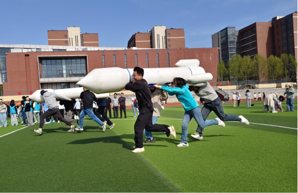 在“神舟一號(hào)”項(xiàng)目中,隊(duì)員齊心協(xié)力托舉“火箭”,在跑道上展開激烈的沖刺接力;在“妙筆生花”環(huán)節(jié),選手們手持巨型鉛筆精準(zhǔn)粘取沙包,他們專注的神情和熟練的動(dòng)作引得場邊觀眾歡呼不斷;“財(cái)源滾滾”環(huán)節(jié),各隊(duì)的你追我趕、默契配合,更是充分展現(xiàn)了老師們昂揚(yáng)向上的精神風(fēng)貌與團(tuán)結(jié)協(xié)作的集體凝聚力。市場營銷教研室俞以平老師表示:“此次活動(dòng)不僅讓大家在運(yùn)動(dòng)中釋放壓力、增進(jìn)情誼,更通過趣味項(xiàng)目強(qiáng)化了團(tuán)隊(duì)意識(shí),為今后工作注入更多活力。”