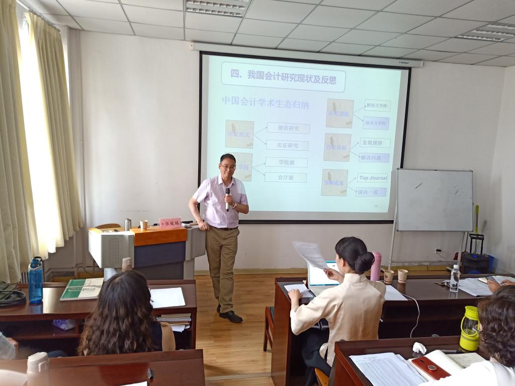 張俊瑞教授演講主題為“我國(guó)會(huì)計(jì)理論研究四十年:回顧與展望”,他從歷史視角出發(fā),解讀了會(huì)計(jì)學(xué)科與會(huì)計(jì)研究的基本框架,深入分析了1978年以來(lái)我國(guó)會(huì)計(jì)理論研究各發(fā)展階段特征,系統(tǒng)闡述了我國(guó)會(huì)計(jì)學(xué)的發(fā)展史。隨后,張教授對(duì)會(huì)計(jì)學(xué)術(shù)成果及其影響進(jìn)行了解讀,剖析了論文研究的方法特征,分析了學(xué)術(shù)成果的相關(guān)影響因素。與此同時(shí),他對(duì)中國(guó)會(huì)計(jì)研究現(xiàn)狀做出總結(jié)并對(duì)會(huì)計(jì)學(xué)科未來(lái)的發(fā)展做出展望,表達(dá)啟示。最后,張俊瑞教授同現(xiàn)場(chǎng)師生就會(huì)計(jì)學(xué)科重點(diǎn)問(wèn)題進(jìn)行了積極互動(dòng),現(xiàn)場(chǎng)氣氛活躍。