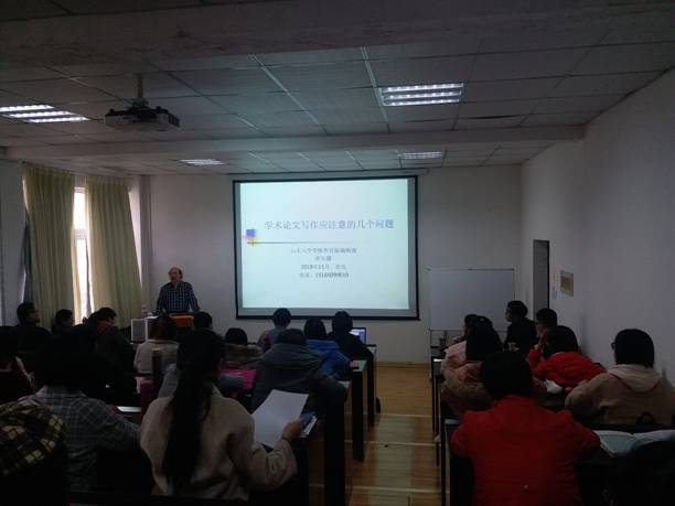 賈樂耀教授對(duì)當(dāng)今投稿的諸多學(xué)術(shù)論文進(jìn)行了總結(jié)性分析,深度剖析了論文投稿過程中出現(xiàn)的弊病。結(jié)合自身審稿經(jīng)驗(yàn),從學(xué)術(shù)論文選題、文獻(xiàn)綜述、論文規(guī)范等三個(gè)方面全面細(xì)致地對(duì)學(xué)術(shù)論文撰寫技巧進(jìn)行了講解,重點(diǎn)在論文選題方面給出了“善于對(duì)學(xué)術(shù)問題提出有理有據(jù)的質(zhì)疑”的建議,并強(qiáng)調(diào)了研究方向新穎、論點(diǎn)鮮明的重要性。賈樂耀教授觀點(diǎn)見底獨(dú)特,深入淺出。各學(xué)院教師積極發(fā)問,針對(duì)教師們提出的在研究方法、研究過程、語(yǔ)言表述,結(jié)合模型方面的問題,賈樂耀教授給予點(diǎn)評(píng)與指導(dǎo)。最后,賈樂耀教授結(jié)合范文進(jìn)行了分析,并提供了2019年度《山東大學(xué)學(xué)報(bào)》所關(guān)注的最新研究方向和選題建議。