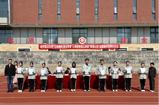 為深入貫徹落實(shí)五育并舉的育人理念,豐富校園文化生活,推動(dòng)心理健康教育與體育運(yùn)動(dòng)相融合,助力學(xué)生身心健康成長(zhǎng),5月11日下午,商學(xué)院組織開(kāi)展2025年“心向暖陽(yáng),舞動(dòng)青春”心理健康操比賽暨“商語(yǔ)心坊”志愿服務(wù)團(tuán)聘任儀式。商學(xué)院黨委副書記、副院長(zhǎng)馬松,學(xué)生工作處大學(xué)生心理健康教育中心教師楊波,體育教學(xué)部教師成向榮,商學(xué)院團(tuán)委書記兼學(xué)工辦主任孫楚、各年級(jí)輔導(dǎo)員和2024級(jí)全體本科生參加。