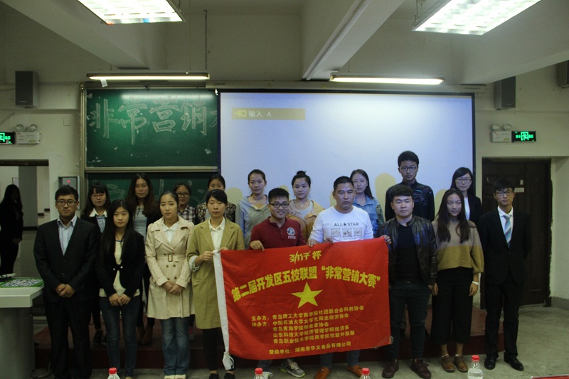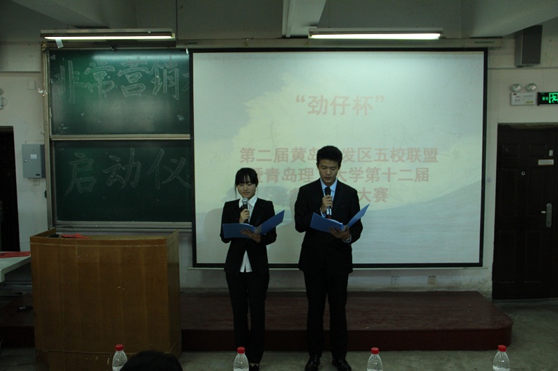 10月25日上午,“勁仔杯”第二屆開發(fā)區(qū)五校聯(lián)盟“非常營(yíng)銷大賽”在我校長(zhǎng)江路校區(qū)二教階303成功啟動(dòng),本次大賽由我校商學(xué)院學(xué)生社團(tuán)聯(lián)合會(huì)發(fā)起并主辦。出席本次活動(dòng)的嘉賓有贊助商湖南華文食品有限公司代表漆云波、王俊程先生,以及中國(guó)石油大學(xué)(華東)、山東科技大學(xué)、青島高等職業(yè)技術(shù)學(xué)院、青島黃海學(xué)院和我校商學(xué)院社聯(lián)的負(fù)責(zé)同學(xué)近200人。