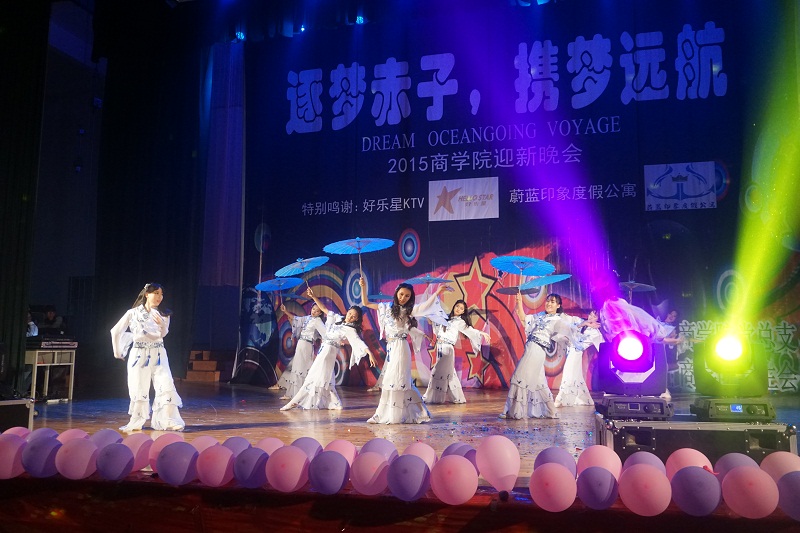 10月21日晚,商學(xué)院“逐夢赤子,攜夢遠(yuǎn)航”2015級(jí)學(xué)生迎新晚會(huì)在科學(xué)會(huì)堂成功舉辦。我院黨總支書記王新,團(tuán)總支書記任孔冰,輔導(dǎo)員牟宗鑫、孫照,外教老師shane,以及學(xué)院各年級(jí)學(xué)生近千人觀看了演出。