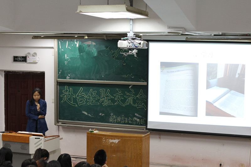 活動(dòng)開(kāi)始后,首先由潘藝林同學(xué)作交流,她從讀書(shū)、旅行、學(xué)術(shù)三個(gè)方面分別介紹自己在臺(tái)灣暨南大學(xué)交換學(xué)習(xí)期間的心得體會(huì)以及赴臺(tái)前準(zhǔn)備和注意事項(xiàng),其中著重介紹了學(xué)校的圖書(shū)館以及一些有趣的課程等。隨后周佳同學(xué)介紹了臺(tái)灣的風(fēng)土人情,同時(shí)談了自己的交流生活學(xué)習(xí)經(jīng)驗(yàn)。從現(xiàn)場(chǎng)展示的照片中可以看出她們?cè)谂_(tái)灣的學(xué)習(xí)生活很充實(shí),通過(guò)她們的介紹,幫助有意向準(zhǔn)備赴臺(tái)灣高硫交流學(xué)習(xí)的同學(xué)了解了赴臺(tái)交流的更多事宜。