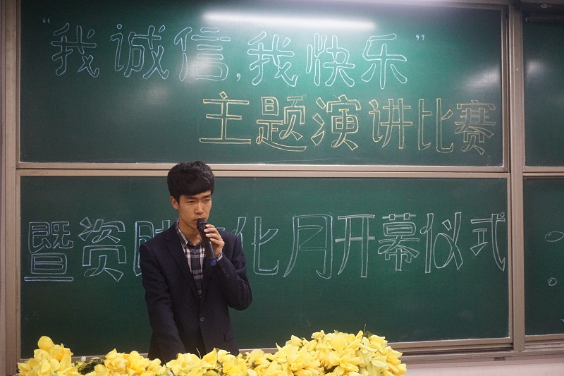為提高學(xué)生誠信意識,商學(xué)院于 5月17日在二教221室舉行了“我誠信,我快樂”主題演講比賽。出席的嘉賓有商學(xué)院輔導(dǎo)員牟宗鑫老師,優(yōu)秀學(xué)生代表周乾、劉葉子,以及14級自管會成員宋歌和鄒清帆。