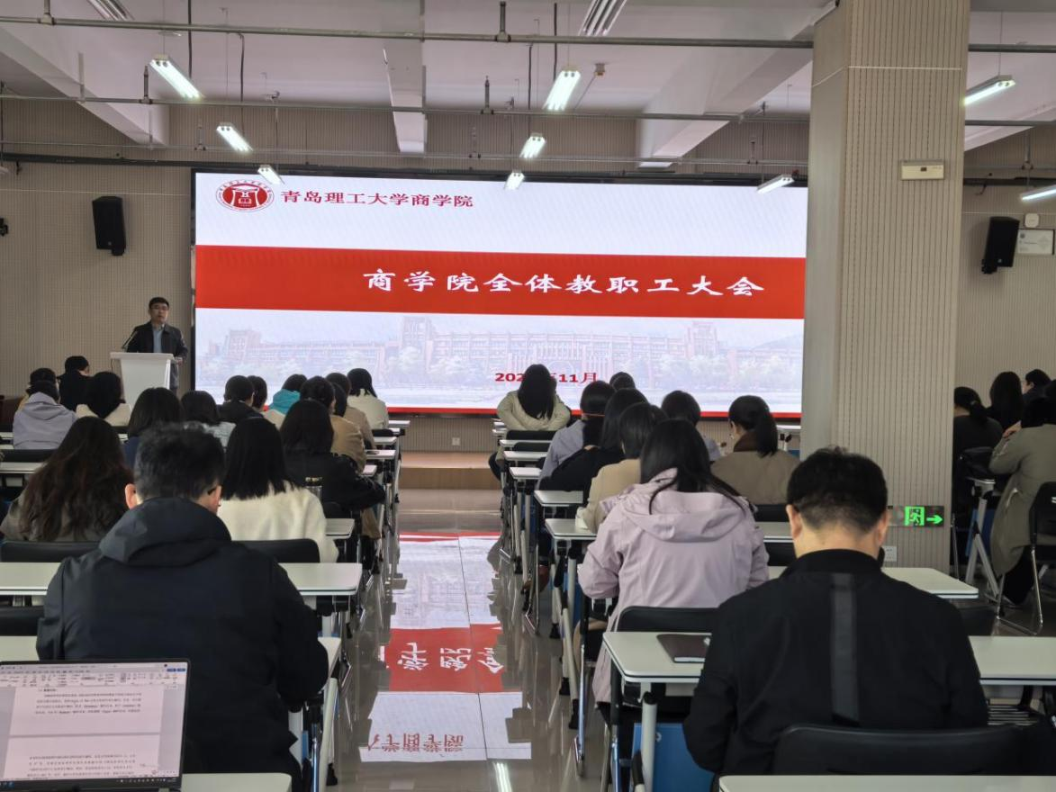 11月12日,商學(xué)院在學(xué)院樓401報告廳組織召開全院教職工大會,學(xué)習(xí)傳達(dá)學(xué)校有關(guān)會議精神,全面總結(jié)近期工作,并就未來重點(diǎn)任務(wù)進(jìn)行部署。會議由商學(xué)院院長云樂鑫主持,學(xué)院黨委書記肖學(xué)斌及領(lǐng)導(dǎo)班子成員、全體教職工參加會議。