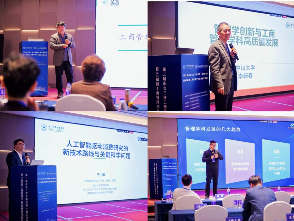 會(huì)議期間,與會(huì)代表聽取了多場(chǎng)高水平學(xué)術(shù)報(bào)告,內(nèi)容涵蓋學(xué)科理論創(chuàng)新、范式轉(zhuǎn)型、人才培養(yǎng)與實(shí)踐應(yīng)用等多個(gè)維度。上海交通大學(xué)李垣教授以“雙波驅(qū)動(dòng)的企業(yè)創(chuàng)新”為題,探討了政府與市場(chǎng)雙重波動(dòng)對(duì)企業(yè)創(chuàng)新戰(zhàn)略的影響;南開大學(xué)張玉利教授立足學(xué)科發(fā)展態(tài)勢(shì),闡述了工商管理學(xué)科的時(shí)代使命與科研方向;中山大學(xué)李新春教授從管理思想史視角,分析了管理學(xué)創(chuàng)新與學(xué)科高質(zhì)量發(fā)展的內(nèi)在邏輯;浙江大學(xué)王小毅教授則聚焦人工智能驅(qū)動(dòng)的消費(fèi)行為研究,提出了“自主研究”新范式與技術(shù)路線。此外,華中科技大學(xué)楊治教授、東北財(cái)經(jīng)大學(xué)鄭文全教授、廈門大學(xué)吳育輝教授、大連理工大學(xué)李延喜教授等專家,也分別就學(xué)科發(fā)展趨勢(shì)、AI應(yīng)用風(fēng)險(xiǎn)、商科人才培養(yǎng)、企業(yè)微觀管理、領(lǐng)導(dǎo)力重構(gòu)、本碩教育模式創(chuàng)新等議題作了精彩報(bào)告,為參會(huì)者提供了豐富的理論啟示與實(shí)踐參考。