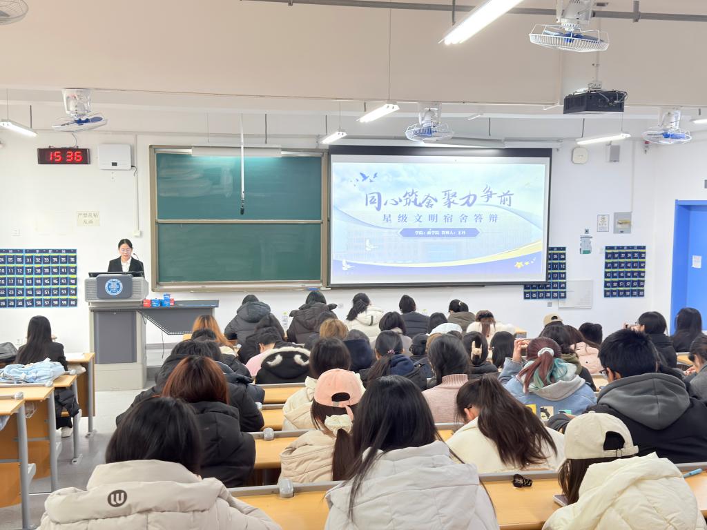 為持續(xù)深化“一站式”學(xué)生社區(qū)建設(shè),營造健康向上、文明和諧的學(xué)生社區(qū)文化氛圍,樹立先進(jìn)典型,激發(fā)學(xué)生參與社區(qū)管理的主動性和創(chuàng)造性,近日,商學(xué)院在二教402教室舉辦2025年度星級文明標(biāo)兵宿舍答辯會。學(xué)院團(tuán)委書記兼學(xué)工辦主任孫楚,輔導(dǎo)員周麗、王賽、魏倩倩、張夕璇擔(dān)任本次答辯評委。