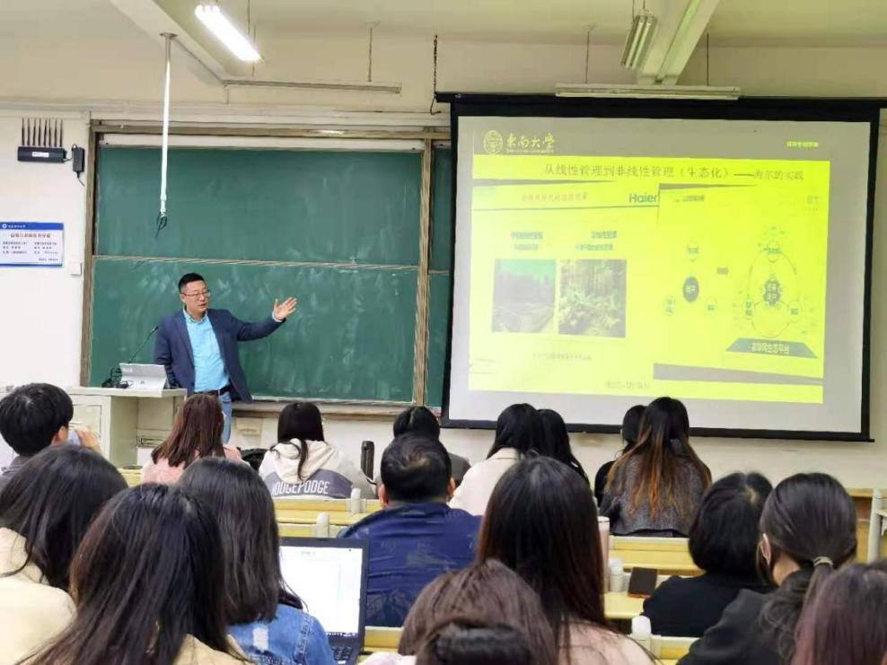 云樂鑫代表商學(xué)院對杜運周教授的到來表示歡迎,強調(diào)同學(xué)們要重點把握講座主要精神,將講座的先進理念與方法融入到科研工作當(dāng)中。講座中,杜教授基于獨特深入的學(xué)術(shù)積累與見解,為同學(xué)們介紹了學(xué)術(shù)界對經(jīng)濟環(huán)境、分析方法以及視角的認識與應(yīng)用,并以海爾物聯(lián)網(wǎng)生態(tài)系統(tǒng)為切入點,分層次揭示了背后的深層理論,并通過現(xiàn)實經(jīng)濟社會中復(fù)雜創(chuàng)業(yè)現(xiàn)象對分析方法的挑戰(zhàn)、傳統(tǒng)的線性管理到如今的非線性管理、社會科學(xué)四種研究視角、創(chuàng)新創(chuàng)業(yè)等,讓現(xiàn)場師生對多元化研究方法及其復(fù)雜多變的經(jīng)濟大背景有了深入了解。隨后,杜教授引申出本次講座的重點——QCA(定性比較分析方法)與組態(tài)視角下的管理學(xué)研究。杜教授強調(diào),如今企業(yè)以及經(jīng)濟的發(fā)展,都是一個完整的生態(tài),科研工作者可以用定性比較分析方法研究企業(yè)發(fā)展的復(fù)雜性和存在的生態(tài)問題。最后,杜教授同現(xiàn)場師生進行了積極互動,現(xiàn)場氛圍良好。