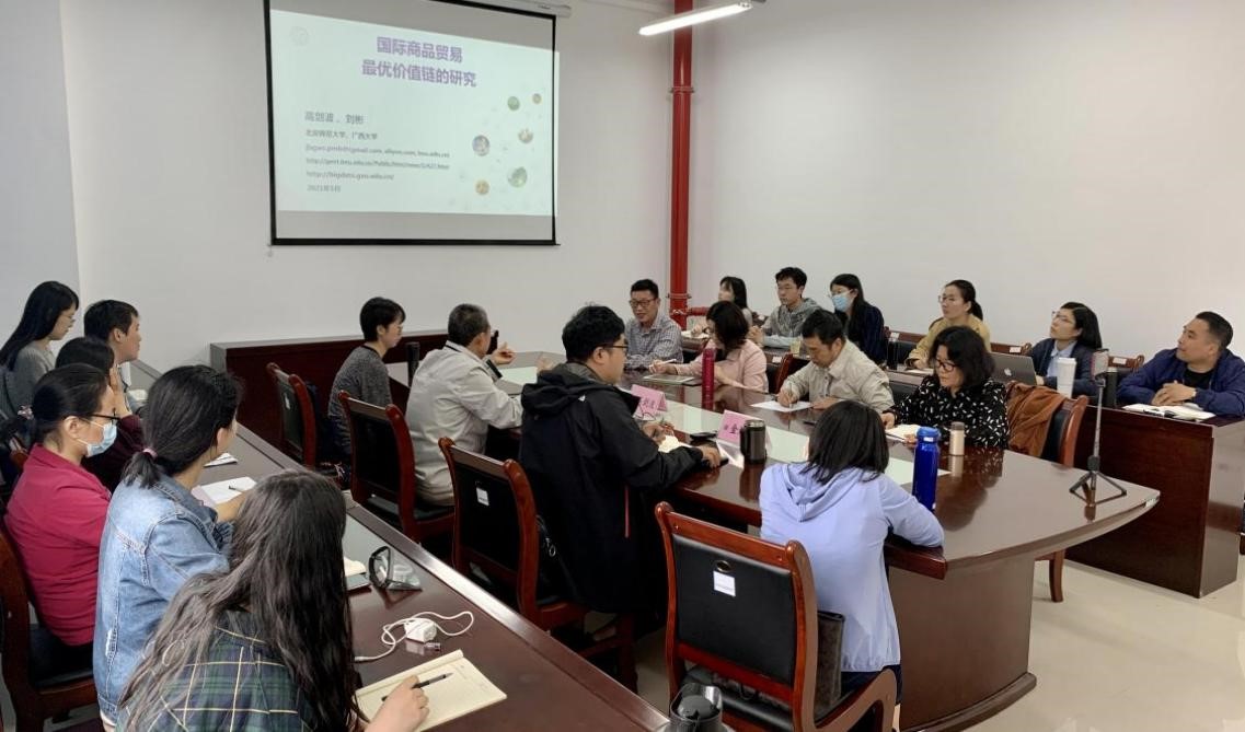 5月26日下午,西海岸商學(xué)論壇弘商講堂(第19講)在商學(xué)院411會(huì)議室舉辦。本期邀請(qǐng)北京師范大學(xué)高劍波教授擔(dān)任主講,主題為“國(guó)際商品貿(mào)易最優(yōu)價(jià)值鏈的研究”。商學(xué)院相關(guān)專業(yè)教研室教師和研究生通過(guò)線上和線下等方式參加會(huì)議,院長(zhǎng)助理金煒博主持會(huì)議。